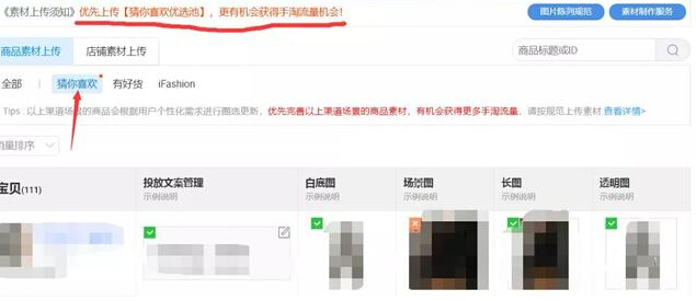 进入素材中心,点击猜你喜欢栏目,如果你的宝贝出现在了猜你喜欢池中,说明你是满足了获取手淘首页的资格,如果你的宝贝没有出现在这个优选池当中,那么你是很难获得特别大的首页流量的。