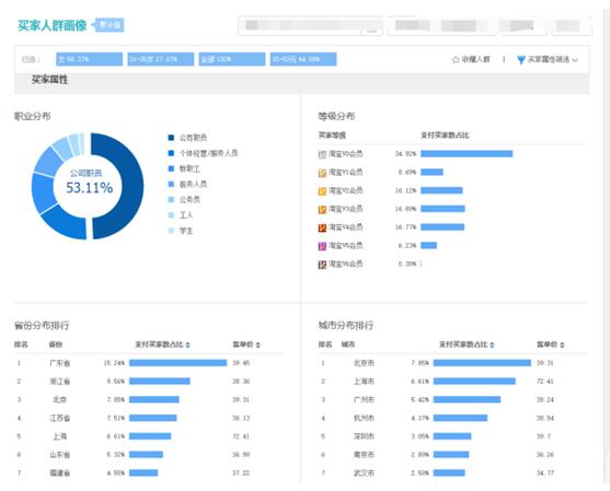 5、了解整体类目下的目标人群分析。如图4,看看搜索人群是什么样的属性。以便于我们定位自己的店铺风格和装修策略。